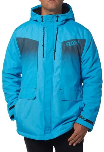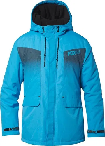 The Fox race-inspired urban insulated jacket is made of 100% polyester in a Plain Weave 230g. Design panels made of Ripstop material on the chest, DWR treatment with 600mm water repellent coating resists wind and splashing water. Insulated with 140g warm polyfil filling, microfleece lining. Chest pocket, two side pockets with overlap, adjustable hood and sleeve cuffs, Fox print on the chest.